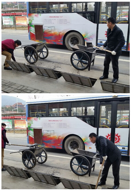 高新公交開(kāi)福寺停車(chē)場(chǎng)洗車(chē)區域由于頻繁使用,車(chē)輛上附著(zhù)的泥沙經(jīng)過(guò)沖刷形成淤泥堆積至排水管道,出現了堵塞和污水滯留的現象。為保障運營(yíng)車(chē)輛的正常洗刷,1月20日下午,運營(yíng)管理部負責人帶領(lǐng)部門(mén)員工,逐一查看排水管道堵塞位置,并使用鐵鍬等工具分段清除淤泥,疏通排水管道堵塞地方,避免場(chǎng)內出現污水滯留、漫灌等現象,保證了洗刷車(chē)輛的污水正常排出,保障了洗車(chē)區域的日常使用。