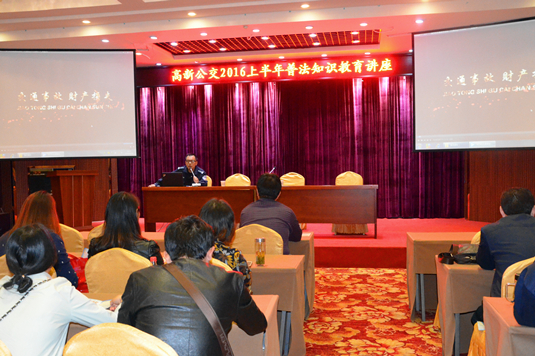 為進(jìn)一步增強公司員工的交通安全意識、交通法制意識和交通文明意識,加強道路交通事故預防能力,全面提升構建文明出行、安全出行的道路交通環(huán)境。高新公交于2016年4月28日、29日組織開(kāi)展2016上半年普法教育講座。