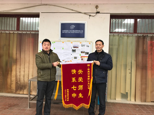 1月19日上午,合肥市第七中學(xué)新校區蘇校長(cháng)一行人來(lái)到高新公交運營(yíng)部,送來(lái)了一封感謝信和一面繡有“情系七中 關(guān)愛(ài)師生”的錦旗,對高新公交表示感謝。