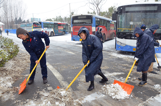 1月25日,高新公交各部門(mén)在公司領(lǐng)導的組織帶領(lǐng)下,紛紛來(lái)到開(kāi)福寺停保場(chǎng)清理地面積雪,此次降雪氣溫低,導致路面上凍現象明顯,若不及時(shí)清理積雪,會(huì )給車(chē)輛行駛帶來(lái)很大的安全隱患。隨后,公司領(lǐng)導來(lái)到大陸輪胎站房,詢(xún)問(wèn)了早間車(chē)輛運營(yíng)情況,并一步強調要提醒駕駛員注意安全,減速慢行,還要求站長(cháng)做好后勤保障工作,對首末站的積雪,也應及時(shí)進(jìn)行清理,防止道路結冰上凍。