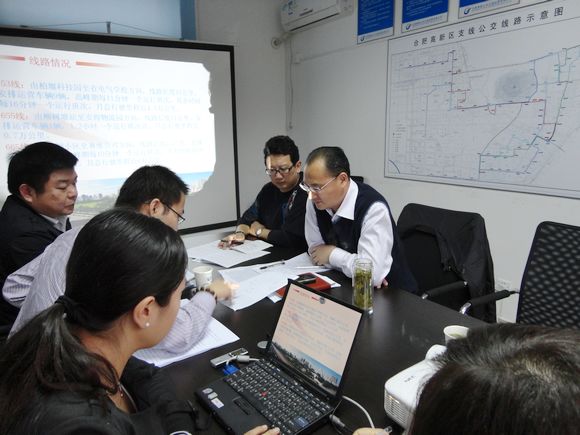 調研工作在公司領(lǐng)導的工作匯報中開(kāi)始,公司領(lǐng)導介紹了目前共開(kāi)通650、651、652、653、655、665六條園區支線(xiàn)公交,運營(yíng)車(chē)輛共40臺,運營(yíng)線(xiàn)路總長(cháng)79.4公里,日均行駛里程約7000公里,日均客運量2萬(wàn)人次;累計實(shí)現安全運營(yíng)里程達170萬(wàn)公里,服務(wù)人數超過(guò)375萬(wàn)人次等主要基本情況以及公司的發(fā)展現狀和未來(lái)規劃,并特別講述了公司實(shí)施準點(diǎn)率等有效舉措。