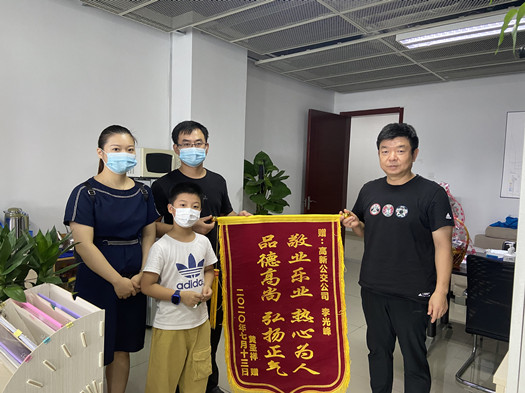 黃先生一家特地送來(lái)錦旗表示感謝,并說(shuō)到:“孩子這么小,也不認識路,現在外面壞人這么多,要不是李光鋒師傅把孩子送回家后果不堪設想,真的非常感謝李光鋒師傅?!?/span>
