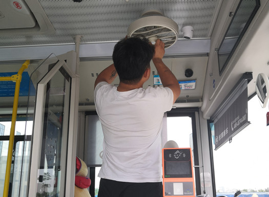 檢修駕駛室處風(fēng)扇。沒(méi)有空調的車(chē)輛,風(fēng)扇是駕駛員取風(fēng)的重點(diǎn),為做好一線(xiàn)后勤工作,高新公交已對有問(wèn)題的風(fēng)扇進(jìn)行維護,確保司機不因高溫減員,盡力保證乘客出行方便。