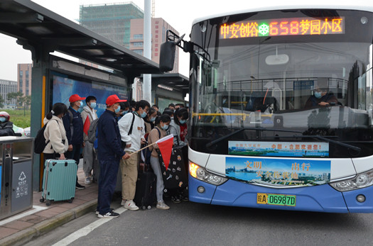 志愿者們在站臺提醒學(xué)生做好個(gè)人防護,引導學(xué)生文明出行、排隊乘車(chē);同時(shí)向學(xué)生及家長(cháng)宣傳文明乘車(chē)和安全乘車(chē)須知,解答學(xué)生及家長(cháng)的咨詢(xún),維護放學(xué)高峰期期間七中站點(diǎn)的秩序,為七中學(xué)子營(yíng)造了安全暢通、文明有序、和諧禮讓的乘車(chē)環(huán)境。