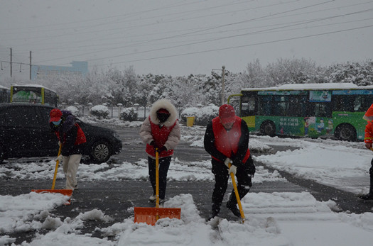 大雪擋不住大家的鏟雪熱情,黨員們紛紛揮動(dòng)手中的鐵鍬,為奮戰在一線(xiàn)的同事和出行的居民開(kāi)辟出一條“綠色通道”。雪越下越大,大家衣服都裹成了白色,但這絲毫無(wú)法動(dòng)搖同志們的信念。通過(guò)不懈努力,終于將停保場(chǎng)及公交站點(diǎn)積雪清除干凈,消除了安全隱患,為交通安全運營(yíng)提供了有力保障。