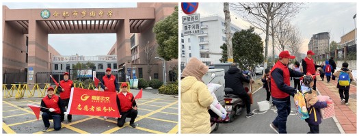護學(xué)行動(dòng)中,身穿紅色志愿服的志愿者們分外吸睛,他們在校門(mén)口維持學(xué)生進(jìn)校秩序,配合交警同志疏導交通,確保校門(mén)口車(chē)輛不擁堵、人員不擁擠,為第一天返校的中小學(xué)生們保駕護航。