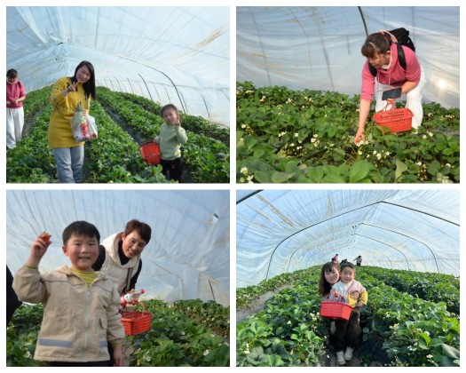 采摘園內一片生機勃勃,一畦畦碧綠的草莓秧下,一顆顆嬌艷欲滴的草莓散落在綠葉從中,壓彎了枝頭。翠綠的葉子、鮮紅的果實(shí)、芬芳的果香讓你垂涎欲滴,草莓大棚里雖然道路狹窄,空氣悶熱,但是大家的熱情卻絲毫未減,沿著(zhù)整齊的草莓田,大家一邊采摘一邊品嘗,互相交流著(zhù)關(guān)于如何辨別草莓成熟等方面的知識,氣氛輕松活潑,歡聲笑語(yǔ)不斷。