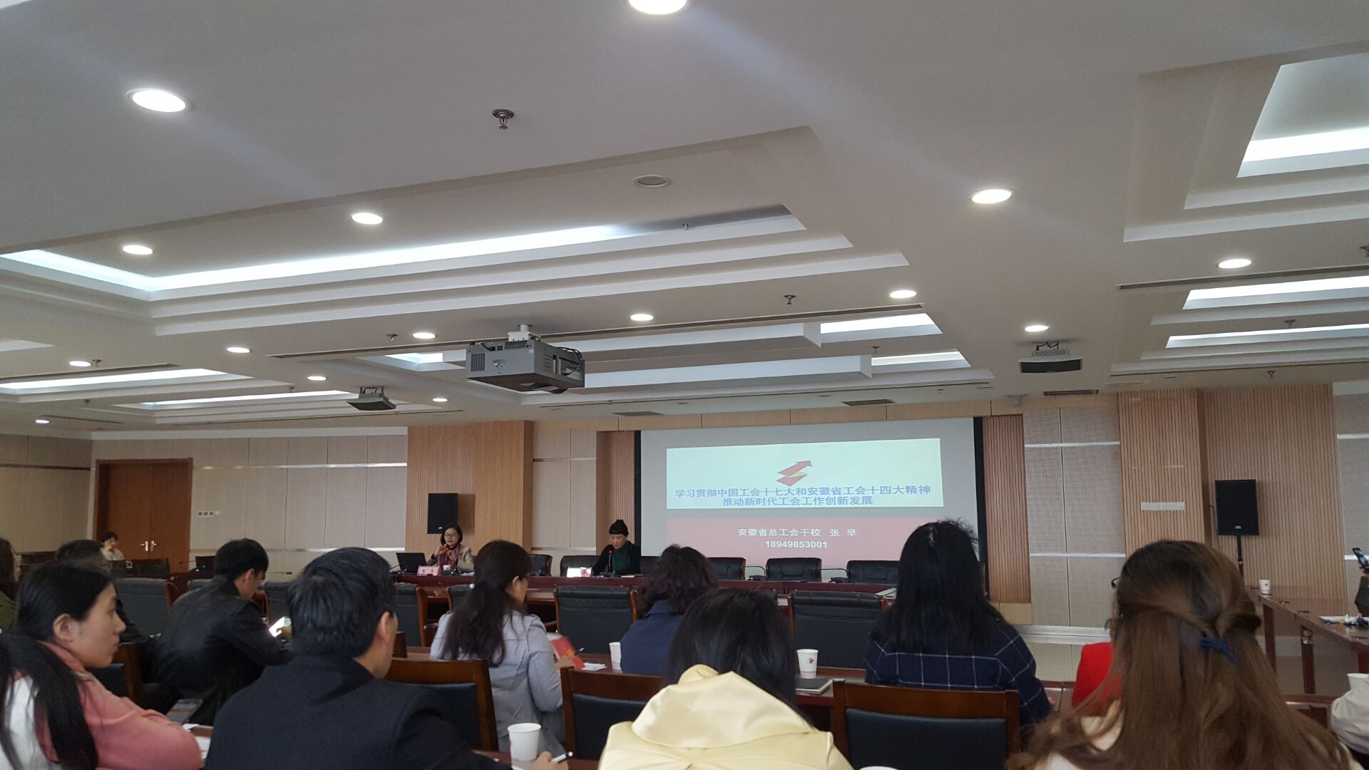會(huì )議邀請了省總干校張舉教授講授學(xué)習貫徹中國工會(huì )十七大會(huì )議精神和安徽省工會(huì )十四大精神推進(jìn)新時(shí)代工會(huì )工作創(chuàng )新,從重點(diǎn)解讀十七大精神、十四大精神及工會(huì )工作落腳點(diǎn)三個(gè)方面,詳細講解深入學(xué)習領(lǐng)會(huì )習近平總書(shū)記重要講話(huà)的重大意義和精神實(shí)質(zhì)。深刻認識領(lǐng)會(huì )王滬寧同志代表黨中央作的致詞,把思想和行動(dòng)統一到黨的十九大精神上來(lái),把智慧和力量凝聚到落實(shí)黨中央決策部署上來(lái),唱響新時(shí)代奮斗者之歌。深入學(xué)習領(lǐng)會(huì )王東明同志作的中國工會(huì )十七大報告,尤其是對于習近平總書(shū)記關(guān)于工人階級和工會(huì )工作重要論述的基本內涵的系統深刻的闡述,堅持黨的領(lǐng)導,增強政治性、先進(jìn)性、群眾性,維護職工權益、服務(wù)職工群眾。